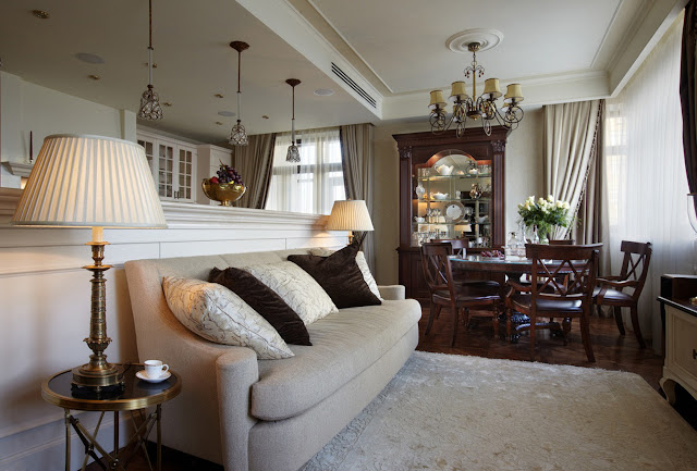 Чтобы визуально расширить пространство и наполнить его дополнительным светом, используйте белую ткань. Драпировка потолка придаст помещению оригинальную воздушную фактуру. Для Африки характерно использование таких материалов как : тростник, палисандр, бамбук, глина, ротанг, пальмовая кора, сандал, венге, кожа и шкуры. В Африканском интерьере нет места изящным линиям и утонченному декору. Мебель должна быть тяжелой и грубой, ее формы просты и строги. Старайтесь придерживаться правильных пропорций. А вот фасады шкафов могут быть украшены традиционный резьбой и орнаментами. Отлично впишется в интерьер кованная мебель и аксессуары, также уместно будут смотреться плетенные кресла, ящики, столики. Отличным дополнением в африканском интерьере станут эбеновые или кедровые сундуки. Они используются не только для хранения вещей, но и в качестве скамей. Что используется для декора: жалюзи из бамбука, бивни и рога животных, статуэтки, деревянные шкатулки, оружие- копья, луки, стрелы, щиты и топоры, легкие абажуры из ротанга, украшения из слоновой кости, чучело диких животных, изображения экзотических птиц, растения-пальмы, лавр, глиняные кувшины, бутыли, маски, украшения из перьев, керамика с элементами этнического характера. Не превращайте интерьер комнаты в африканском стиле в некое подобие выставочной галереи. Оставляйте в обстановке ровно столько аксессуаров, сколько необходимо для привнесения в нее африканского колорита. В гостиной комнате следует разместить габаритный диван, на котором бы без проблем уместилась большая компания. Лучше если это будет угловая модель. Его дополнят кресла стильные под кожу. Хорошо если они будут иметь насыщенную коричневую обивку. Мягкую мебель можно покрыть пледами тематической окраски и выложить диванными подушками. Дополнит интерьер гостиной в африканском стиле журнальный столик с прозрачной столешницей и объемное настенное панно из стекла, изображающие континентальные пейзажи.